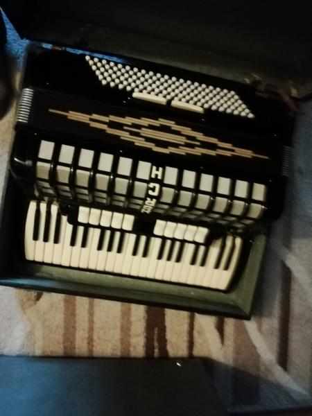 готово-выборная система от Рубин, 7 подбородников, кожаные ремни, чехол. есть нюансы - в левой части пропал звук "фа" на выборе,две левых планки меха поврежденыя, есть потертости краски, раскол в левой нижней части корпуса. 2000 у.е.
