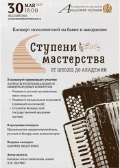 30 мая 2025 г. в 18.00 в Малом зале Белорусской государственной академии музыки (г.Минск, ул. Коммунистическая, 9) состоится концерт «СТУПЕНИ МАСТЕРСТВА: ОТ ШКОЛЫ ДО АКАДЕМИИ».